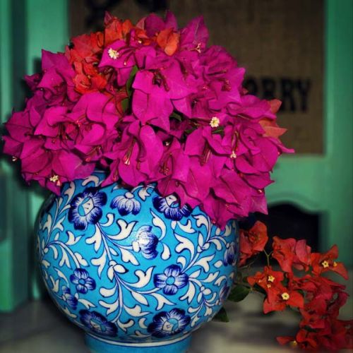 we offer blue pottery vase (vsm 012b). handmade jaipur blue pottery round flower vase.