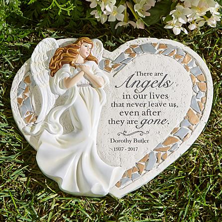 A Personal Creations Exclusive! This garden accent offers the comfort of knowing our deceased loved one’s spirit lives on, thanks to the happy memories they leave behind. Made of resin with mosaic accents. Suitable for indoor and outdoor use. Personalize with any name up to 20 characters and 2 memorial years. Measures 12"Dx9" dia. Item