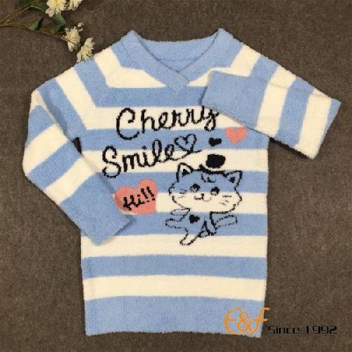 Animal Cable Knitting Stripe V-collar Sweater for Girl : The fashionable cartoon pattern design, is a major highlight of this children's Jacquard sweater. it is not only a decorative role, but also show the little girl's sweet. The simple heart-shaped collar, delicate and gentle, perfectly fitting the neck curve. Choose soft and comfortable fabrics, give each girl a sense of comfort as a princess.