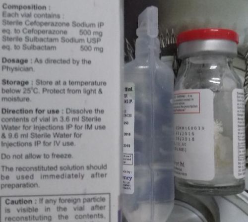 Cefoperazone 500 mg+salbactum 500 mg (1:1) injection.mrp 155. Water for injection also provided.fresh stock with long expiry product will be supplied.efficacy of the product is highly assured.