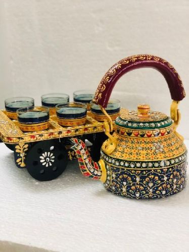 Glass Polished Jaipuri Handicraft Tea Set, Style : Antique