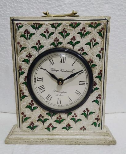 Antique look table clock in fine amboss and bruss painting with handle