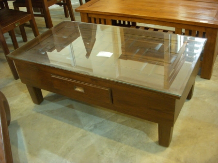We are offering anyam coffee table is a wooden table made by teak wood and on the top bottom of this tables has glass . So this table will look more attractive .