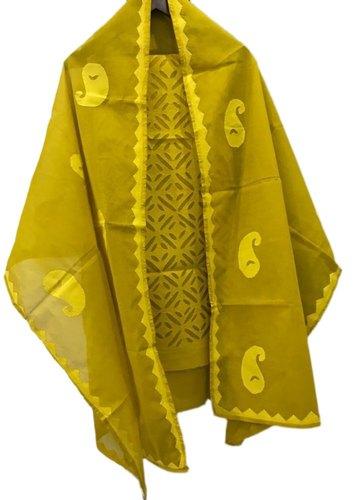 Plain Cotton Applique Work Suit Material, Feature : Waterproof