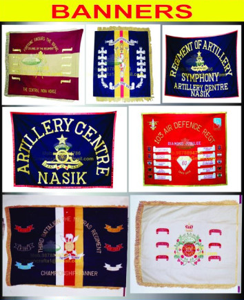 We are take the opportunity to introduce ourselves as we are one of the leading manufacturers and suppliers of all kinds of Armed Forces Uniform accessories such as Golden and Silver Hand Embroidery Zari Champion Banner, CO Banner, Raising Team Crested Wall Banners, Rashtriya Color, Flag,T-Flag, Band Banner, Band Sash, Car Flag, Ranks, Insignia, cap Badges, Table cloth, Table Flag, Lancer Flags, Lancer Set, Silver/Brass, Table Matt, Runner, Tray Cover, Memento's, Trophies, Brass Items, Name Plates, Peak Caps in any shape and size and ceremonial Dress Items for Air Force, Army Navy and all forces.