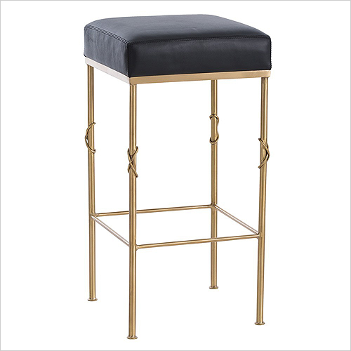 These elegant stools bring quiet sophistication to any bar with their sleek, brushed-satin brass frames and black top-grain leather seats with top-stitched seams. The knot detail on each leg clearly references a classic design motif. 30.5"T, 15"Dia.