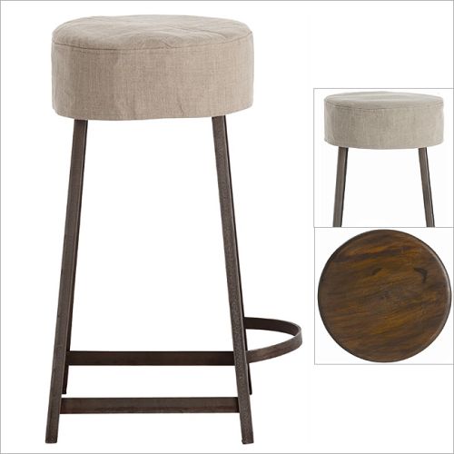Arteriors Rochefort Bar Stool by designer Lisa Luby Ryan. This bar height bar stool is made of iron, has a place for your feet and a solid wood seat with a linen slipcover. Counter height also available 30.5"T x 16"W x 14"D. 30.5 lbs.