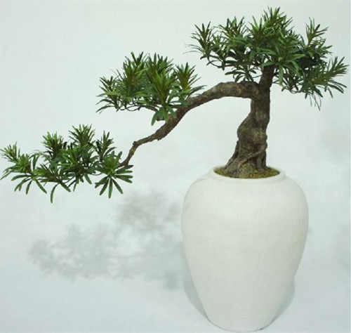 artificial podocarpus bonsai tree manufacturer in china supplies artificial podocarpus bonsai tree, plastic material, single trunk, 55cm, for decoration.product:Â artificial podocarpus bonsai tree.material: 70% plastic+10% metal+12% cement+others.item no.: bc076.size: 55cm.additional size: custom sizes.moq: 50 pcs.base: plastic.application: theme park, home & store decoration, film setting, etc..