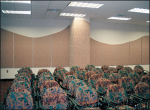 ArtSorb Panels can be installed with impaling clips, top hook and construction adhesive. Due to panel weight up to 2.5lbs per square foot, panels must be installed from floor to ceiling. Floor molding can be re-installed after installation of S-2500 panels.