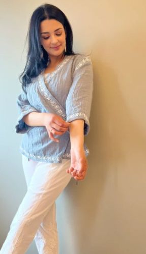 The Ashen Charm Short Top, skillfully crafted with luxurious thick cotton fabric, presents a harmonious blend of timeless charm and plush comfort. Highlights: Stylish shrug style hand-embroidered Short Top Delicate hand embroidery on the front, back & sleeves Soft on your skin Our model is wearing size S and she is 5 feet 4 inches tall. What's in the Panache Box: Short Top Style with: Kurta Pants, Palazzo, Trousers, Jeans Fabric: Cotton Please note: we dispatch all orders within 2-4 working days
