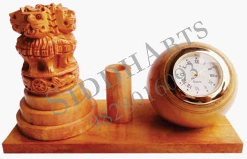 Ashoka Stambh with Watch is made by the hands of the expert craftsman of Jaipur with the fineness Quality Kadam Wood with Fineness Quality Hand Carving in shape of Ashoka Stambh with Pen holder and wooden Watch which is perfect item for the Home and office Decor as well as gift purposes to loved once , family , friends.