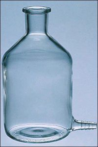 Aspirator bottles are used to sediment solid or suspended particles in liquid materials. The liquid is filled into the container. After some time, the heavier solid particles deposit at the bottom of the aspirator bottle and the stopcock is opened to release the liquid into a collection flask. These DULABâ„¢ aspirator bottles have a tubular sidearm outlet near the bottom for attachment of flexible plastic tubing and are very useful as a delivery/storage container for solutions. These bottles feature sturdy ring necks with a heavy duty rims and rubber stoppers.