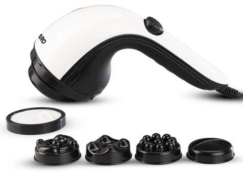Electric handheld body massager helps in relaxation and pain relief via deep tissue Stimulation 4 Detachable massage heads, 1 mesh cover for a full body massage Cloth mesh cover helps to avoid tangling of body hair during massage Variable speed selection from low to high via control knob Compact and portable 1 year warranty
