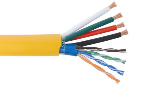 Features and Benefits Structured composite cable for keypad and volume control Jacketed UTP category 5e and 4 speaker wires under one jacket 105-strand oxygen free copper speaker wires Components cabled together and unshielded Flame rated PVC jacket NEC CM, CEC CMG FT4, RoHS compliant 500 foot spools Applications Volume Control single pull cable infrastructure 16 AWG supports up to 100w at 50 feet Low cost economical UTP for IR and control hookup Class 2 and Class 3 low voltage power Instrumentation and Control