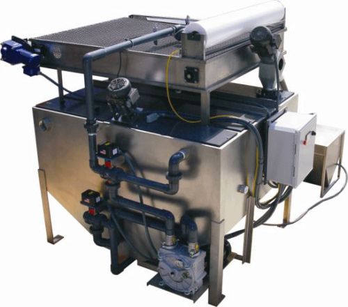 the water is separated from the solids by filtering through a paper media on a roll mechanism. Other means of separationfiltration is achieved by use of a belt press or a filter press.