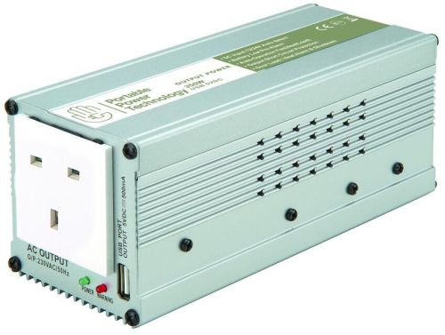 Our portable 1224vdc to 230Vac power inverter is perfect for running mains powered equipment up to 350 Watts from your car or leisure battery. Designed for safe and easy connection our wide range of inverters are perfect for those requiring power when "off grid" or for in vehicle use to power tools, computers, TV's etc.