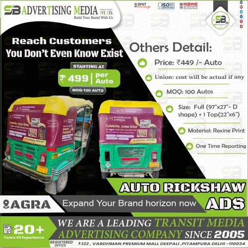 Auto Rickshaw Advertising in Agra up Auto branding in E Rickshaw Branding - Agra gives your brand everyday visibility in city lanes and areas, perfect for engaging with nearby areas on the moveAuto rickshaw advertising services in #Agra, Uttar Prades.h Contact us today