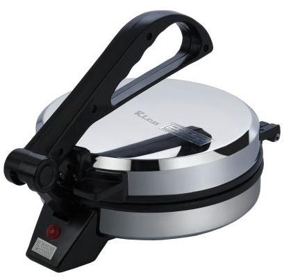 Product Name : Automated Roti MakerProduct Code :RM 1408Features: Wattage: 1000W Handle to press the plates together Knob to lift top plate Mains “on” indicator Red Neon light Both side Food grade non-stick coating. SS electroplated cover. Snap action thermostat. Element for uniform heating. Bakelite handle.