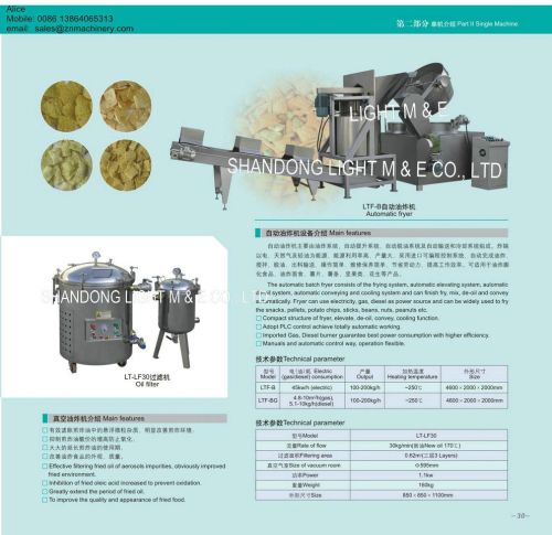 the fryer could make timing frying, spraying oil, deoiling, and convey altogether. The temperature, fry time, and deoiling time are all controlled by pc. All kinds of foodstuff can be fried by this machine and get a stable and uniform result. The oil content of frying food could also be well controlled in deoiling device.