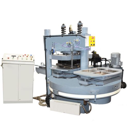 Two Station Rotary Automatic Vibro Press For Paver Blocks, Checkered, Mosaic & Designer Tiles.Features : Low Power Consumption Compact & Economical Easy to put into Production Maximum Pressure 120 Tons Maximum Mould Working Area