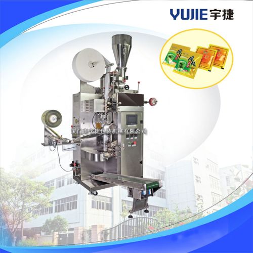 automatic tea-bag packing machine with thread,tag and envelope is a hot-sealed,automatic and multifunction packing equipment ,the main characteristic of this equipment is it can molding in one time to protect the material from the direct contact with workers'hands and improve the efficiency.the inner bag is filter itssue,tagging with thread and label automatically is available.the outer bag is composite paper (including various kinds of composite membrane hotsealable such as paperplastic,plasticplastic,plasticaluminumplastic,paperaluminumplastic.)the most advantage is ,the capacity ,the inner bag and outer bag can be adjuster flexibly,and the size of the inner and outer bag also can be adjuster according to the requirement of the customer to get the perfect effect.