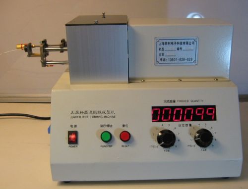 We are offering automatic jumper lead wire forming machine. 1. Coil wire can be fed and cut automatically, no waste. 2. Tungsten steel cutting tool is durable 3. Adjust the span (l) from 5mm to 30mm as desired, need not to change mould. 4. Quantity can be set, efficiency: 8500pcs/h. 5. The main parts exclusively use the carbide, and have long life. 6. Commonly machine forms 0.5-0.6mm wire diameter, if thicker wire when ordering need to explain.