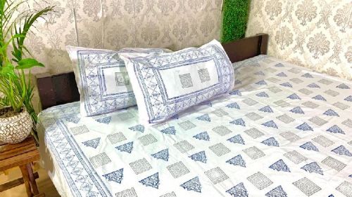 DKWTGRYBLU201 Hand Block Printed Cotton Double Bedsheet?