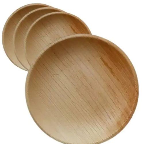 Plain Areca Leaf Round Plate, Color : Light Brown for Serving Food