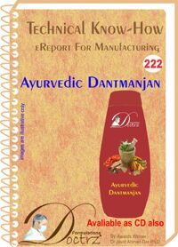 Contact SupplierThe Technical Know-How eReport for making Ayurvedic Dantmanjan (TNHR222)at small scale is a self explanatory report in common man's language which throws light on almost all important factors and steps for manufacturing of above product. The report is an eReport which can be received instantly through online downloadable link OR as an email attachment. You can ask us to provide a CD of the same report, which we can send as a shipment/courier/parcel to your address.