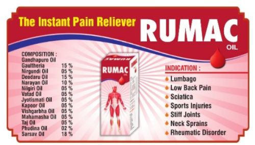 Rumac Ayurvedic Pain Relief Oil, Packaging Size : 50 Ml