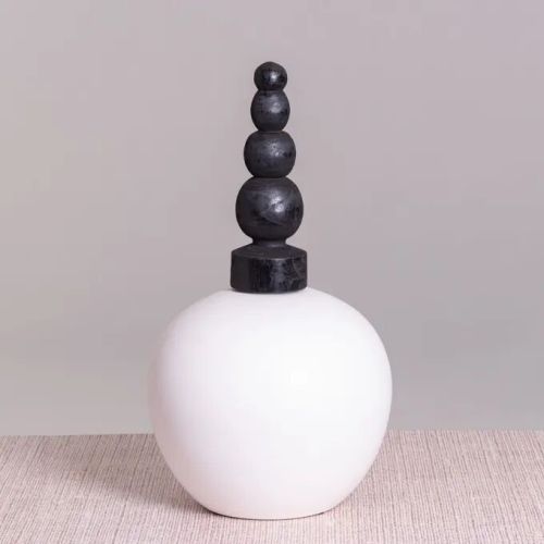 Contact SupplierThe Aztec philosophers focused on establishing balance through their practices. Inspired by this philosophy, our Aztec Aspirations is a balanced beauty: flaunting a globular base with smaller spherical structures on top. The base is made with a material that’s meant to last ages and finished in all-white, while the top is an ensemble of small wooden spheres in black. Owing to its uniqueness, this black and white home decor can be showcased in the entryway or on long bookshelves. Wrap this black and white modern home decor for a loved one or explore similar unique ceramic decorative items from our collection.