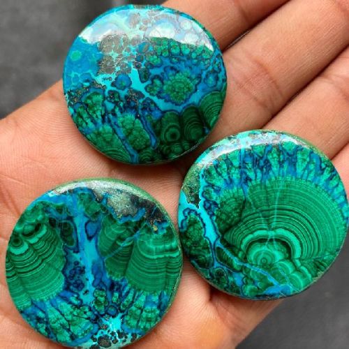 LCW Round Azurite Malachite Cabochon Gemstone, Gemstone Size : 40-35 Mm