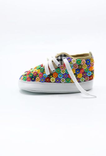 Baby trainer shoes button pattern uppers.Lace up design.Cushioned insoles.Suitable for little girls.
