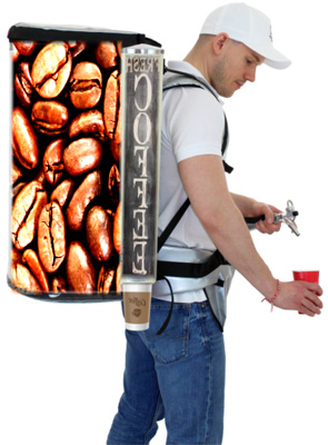 Backpack Coffee Dispenser for 5 11 15 19 22 liter hot coffee or tee Mobile Vending Station for street and stadium vending.