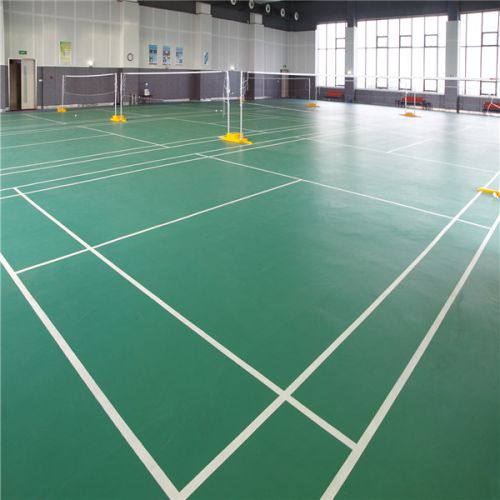 We offer badminton flooring Specifications 1.100% pure pvc raw material 2.one-off scrape coating 3.pvc foamed back, non-woven fabrics 4.iso9001 iso14001 pvc sport flooring width:1.8m thickness:3.5mm-5mm lengthroll:20m-30m pattern:design as your requirement usage:sport ground gym floor matpvc sports floor covering composition: 1.uv layer 2. Wear layer 3. Printed layer 4.glass-fiber layer 5.backing layer