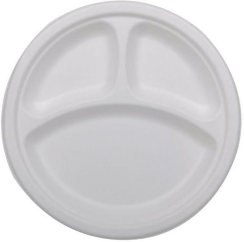 India Plain Bagasse Round Partition Plate, For Serving Food, Color : White