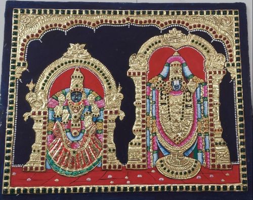 BALAJI PADMAVATI TANJORE PAINTING 12 X 15 INCH 22 CARAT GOLD FOIL MATERIALS : PLYWOOD , CHALK POWDER , JAIPURI STONE WITH TEAK WOOD FRAME WIHTOUT FRAME SIZE 12 X 15 INCH FOR HOME POOJA ROOM