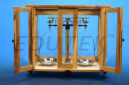 Balance Physical General purpose balance for student use. Cast alloy beam fitted with balancing nuts, agate bearings and knife edges. The hangers have double hooks for specific gravity xperiments. Detachable nickel plated brass pans, enamelled central pillar, plumbline, mounted in polished wooden case with levelling screws. Capacity 250 gm, sensitivity 2 mg.