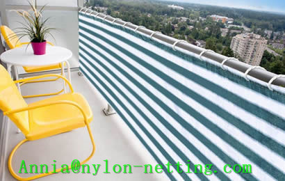 Balcony screen net is made of high density polyethylene (hdpe) with uv stabilizer treatment. It has different colors to choose and makes the balcony look colorful. It is very easy to install on balustrades or balcony to protect personal privacy. Besides, it offers safety for children and pet, preventing them falling from balcony. This net is a ideal covering for balcony.if you are interested contact us via