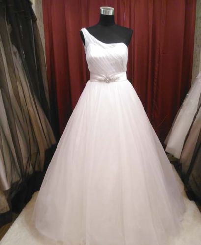 The wedding dress is One-shoulder design, which is a good choice if you do not want to show all of your shoulder.