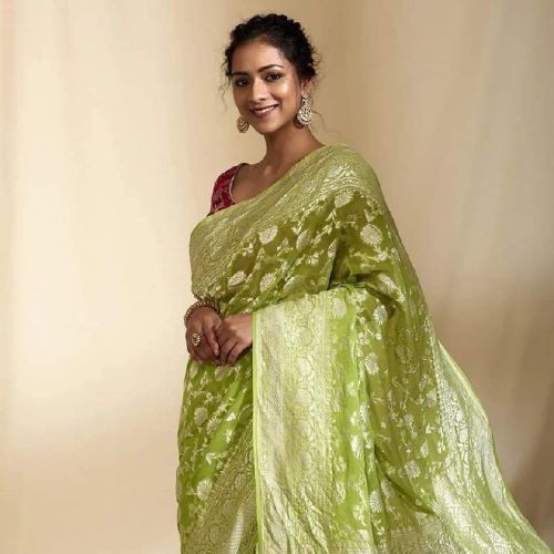 Silver Zari Designer Jall and Silver Zari Border Weaving Full Saree.