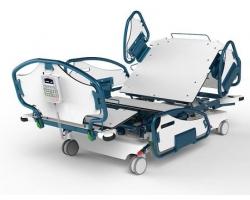 The combination of X-ray cassette, special functions, higher loading capacity and optimal patient area width makes TITAN bed A mobile unit for bariatric patients which minimizes the necessity of patient transfer from bed to bed and makes the work of medical staff easier. The bed offers fully electrically operated functions: reversible lateral inclination, Trendelenburg, Antitrendelenburg, extension of the loading area, cardiac chair, anti-shock position and many more. A great advantage of the bed is the easy exit function, which enables the patient to leave the bed directly without the necessity of further rotation at the loading area.
