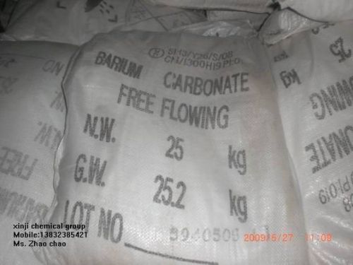We are offering barium carbonate powder. hebei xinji chemical hroup co.,ltd commodity: barium carbonate precipitated cas no.: 513-77-9 formula: baco3 specifications: item specification main content (on baco3 basis) 99.2% min moisture 0.3% max total sulphur (on so4 basis) 0.3% max hcl insoluble matters 0.25% max iron (on fe basis) 0.004% max bulk density (g/cm3): 1.21 max package: 25kg or 1000kg bags (can adjusted as customers requirement) producer: hebei xinji chemical group co., ltd.