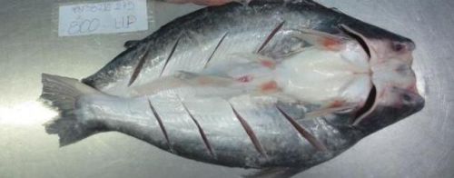 specs: type: pangasius butterfly - specification: skin on, bone on, head on, tail on, bran on, gut off- glazing: 10%-20% - size: 1 kg up- packing: bulk 10k/ carton