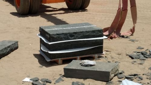Basalt stone step thickness in 150mm top and bottom flamed 3 side hand cutt and one long side swan we r regular manufacturer this step in all sizes and thickness 50mm to 175mm