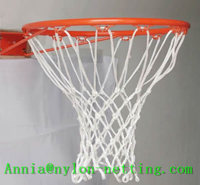 a piece 3 colors red, blue, white basketball net packed in poly bag