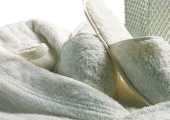 BATHROBE MILLENIUM 100% Extra cotton Colour: White Crimped fibre: 1 end Approximated weight: 1.150gr./unitBath Bath slippers in 2 ends crimped fibre: 100% Extra cotton Colour: White Crimped fibre: 1 end Making-up: with trimming and non-slippy sole Available in 4mm & 5mm Eva soles