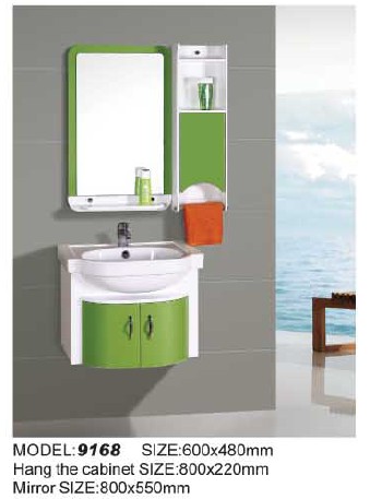 We are offering bathroom cabinet. 1. Material: pvc panel (15mm for door panel , 12mm for side panel) 2. 5mm silver mirror with 15mm frame,ceramic basin and main cabinet. without pop-up ,faucet and drainer 3.soft closing hinges and sliding rails 4. Installation type: wall mounted 5. Packing: main cabinet: foam board and plastic films inside ,strong carton outside ceramic basin: foam board and plastic films inside ,strong carton outside mirror: carton inside ,wooden case outside 6. Lading capacity: about
