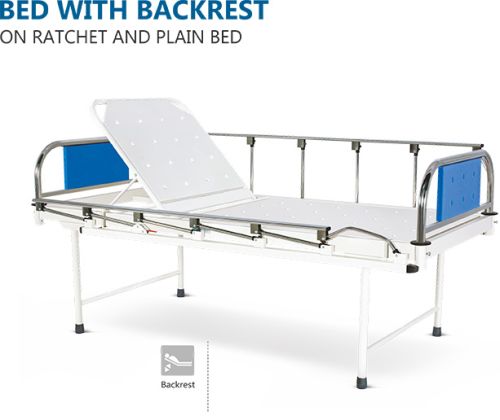 Manually Operated Beds with Backrest on Ratchet : Backrest adjustment on ratchet mechanism with five inclinations Two section uniformly perforated mild steel CRCA sheet top Plain ....