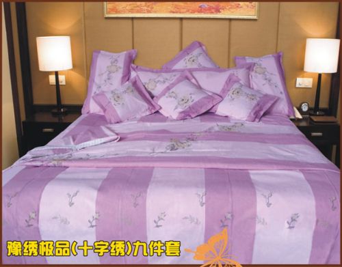 We are offering bedding sets - embroidery (cross stitch) nine sets. Model:yxjp9-8312 specificiation: 250cmx250cm(health sheets) 200cmx240cm(quilt) 50cmx80cm(pillowcasedouble) 50cmx50cm(hold pillowdouble) 50cmx120cm(double pillow) unified retail prices:12800yuan equal to $2085 see
